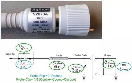 进一步检查用户使用的探头的型号,发现用户使用的是示波器标配的10:1的无源探头。如下图所示。