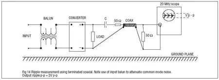 如果手头实在没有合适的低衰减比的探头,也可以用50欧姆的同轴电缆用如下方式自制一个探头。实际上就是把电缆的一头接在示波器上,示波器设置为50欧姆输入阻抗;电缆的另一头剥开,屏蔽层焊接在被测电路地上,中心导体通过一个隔直电容连接被测的电源信号。这种方法的优点是低成本,低衰减比,缺点是一致性不好,隔直电容参数及带宽不好控制。另外,近些年示波器厂商还推出了专门为电源纹波测试设计的探头,结合了低衰减比(1.1:1)、高带宽(硬件2GHz,可以软件设置带宽限制)、兼顾测量需要和噪声的阻抗匹配(探头本身直流输入阻抗为50k欧姆,但示波器端是50欧姆输入阻抗频谱)、短地线(提供很低环路电感的焊接前端)、大偏置范围(可以到±24V)、可以纹波和直流电压同时测试等优点,适用于对于电源纹波测量要求比较高的用户。