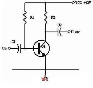 同理,当输入信号减小时,则Ib减小,Ic电流减小。则电阻R2的电压U2=Ic×R2会随之减小,Uce=VCC-U2,会变大。在输入信减小时,Uce最大变化是从1/2的VCC变化到VCC。这样,在输入信号一定范围内发生正负变化时,Uce以1/2VCC为准的话就有一个对称的正负变化范围,所以一般图1静态工作点的设置为Uce接近于电源电压的一半。